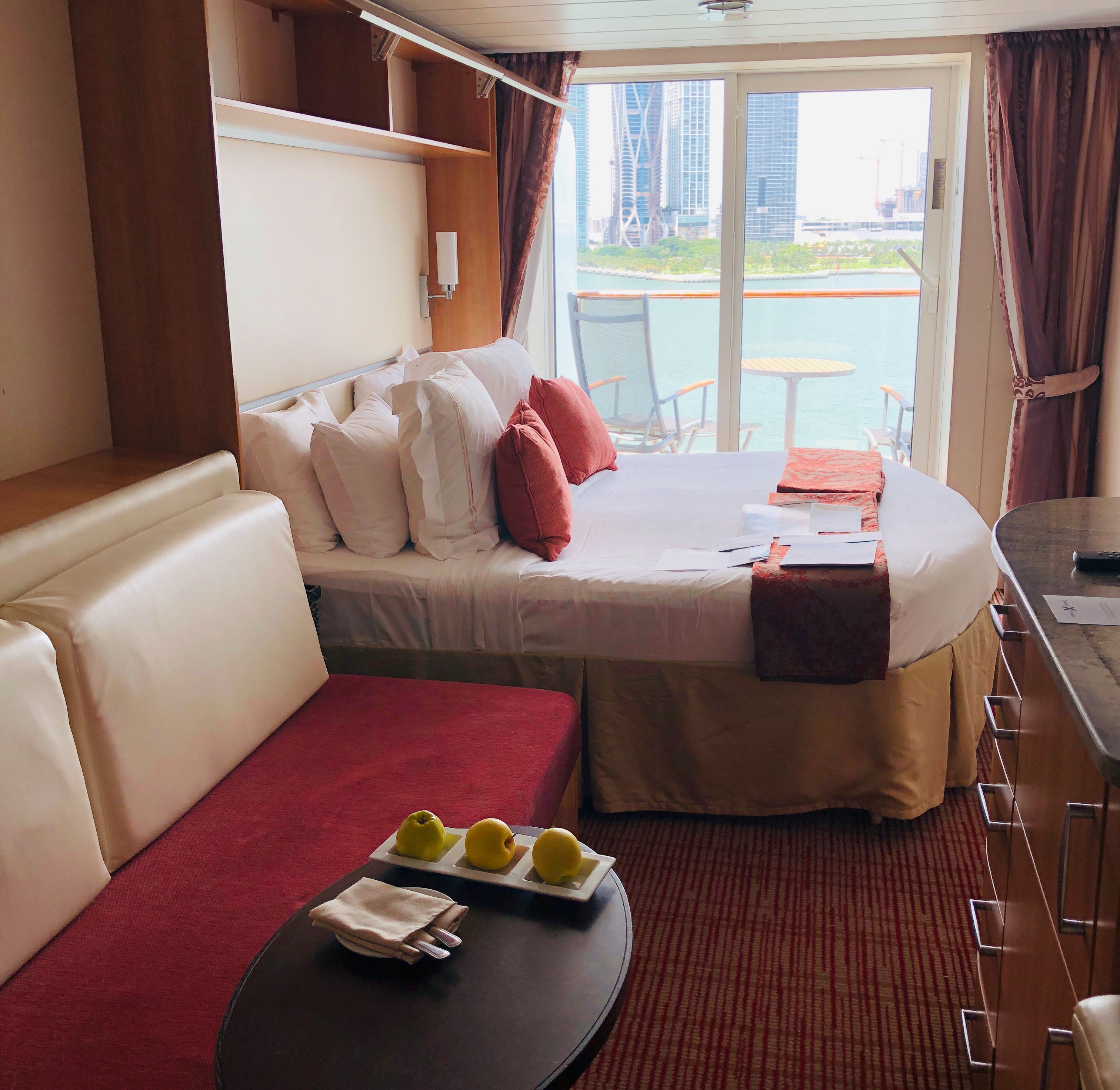Will a balcony help you fully enjoy the cruise – for example, on an Alaska cruise with scenic cruising through Glacier Bay, do you want to enjoy that from a private balcony? Or, do you want to select an interior cabin and spend the money you saved on excursions or luxurious spa treatments? I love a balcony room for views of the water and land — and this is especially important where “scenic cruising” of glaciers or fjords is part of the itinerary. Balconies also provide a bit of additional lounging space, but having said all of that, I often select an interior cabin and do not feel cheated at all. Especially if I know I am not likely to spend much time in my cabin, for example, on a busy, port-intensive cruise, I might decide that instead of a more expensive cabin, my dollars will go toward the port excursions that I want.
