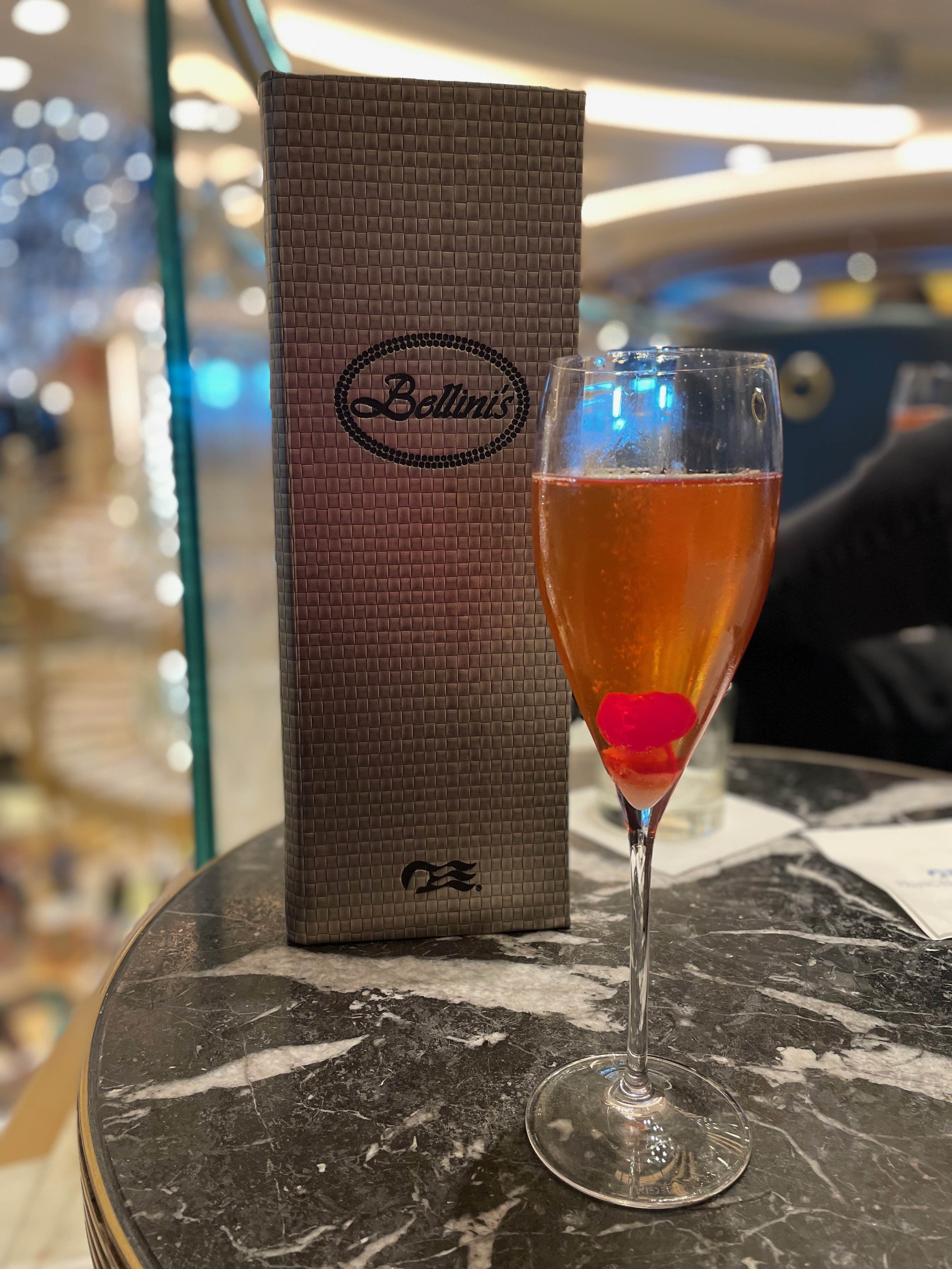 Our favorites on this cruise were Bellini’s, on deck 7 off the atrium, a very small place that also serves the restaurants in the area, but had a great, knowledgable and attentive staff led by Ronnie, and an interesting menu. The view over the atrium here is outstanding, so if there are events going on that deserve your attention but not your participation, it’s the ideal, sweet spot.