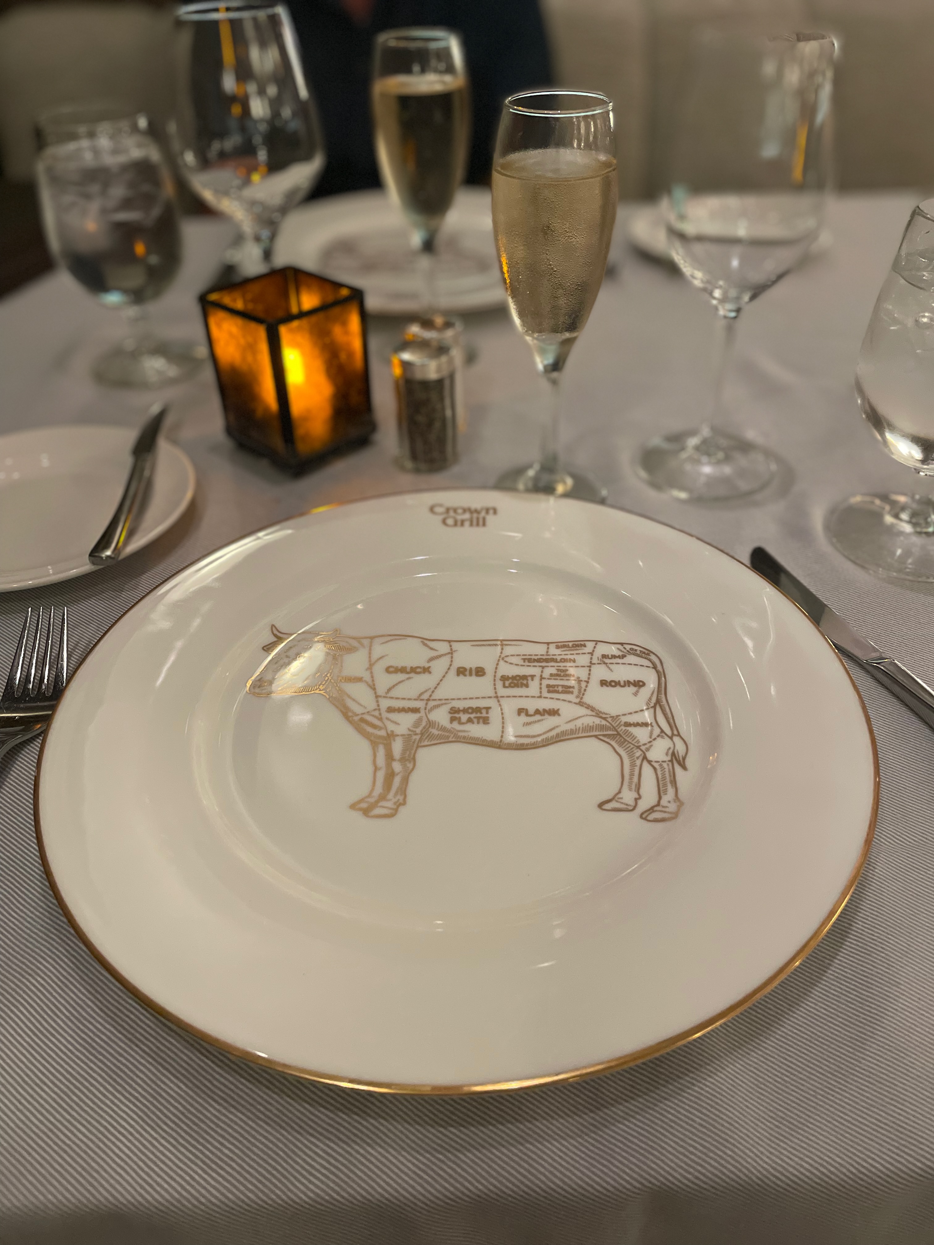 Crown Grill is a favorite, and you will want to be proactive about getting your reservation made ahead of time for that. I saw sad people trying to make reservations on board. We had made ours ahead of time using the app. I am already looking forward to eating there again. It was an excellent dining experience. The scallops with caviar were outstanding. Amazingly, I could not finish my ribeye, and I did not have room for dessert. Not even for creme brulée, alas!