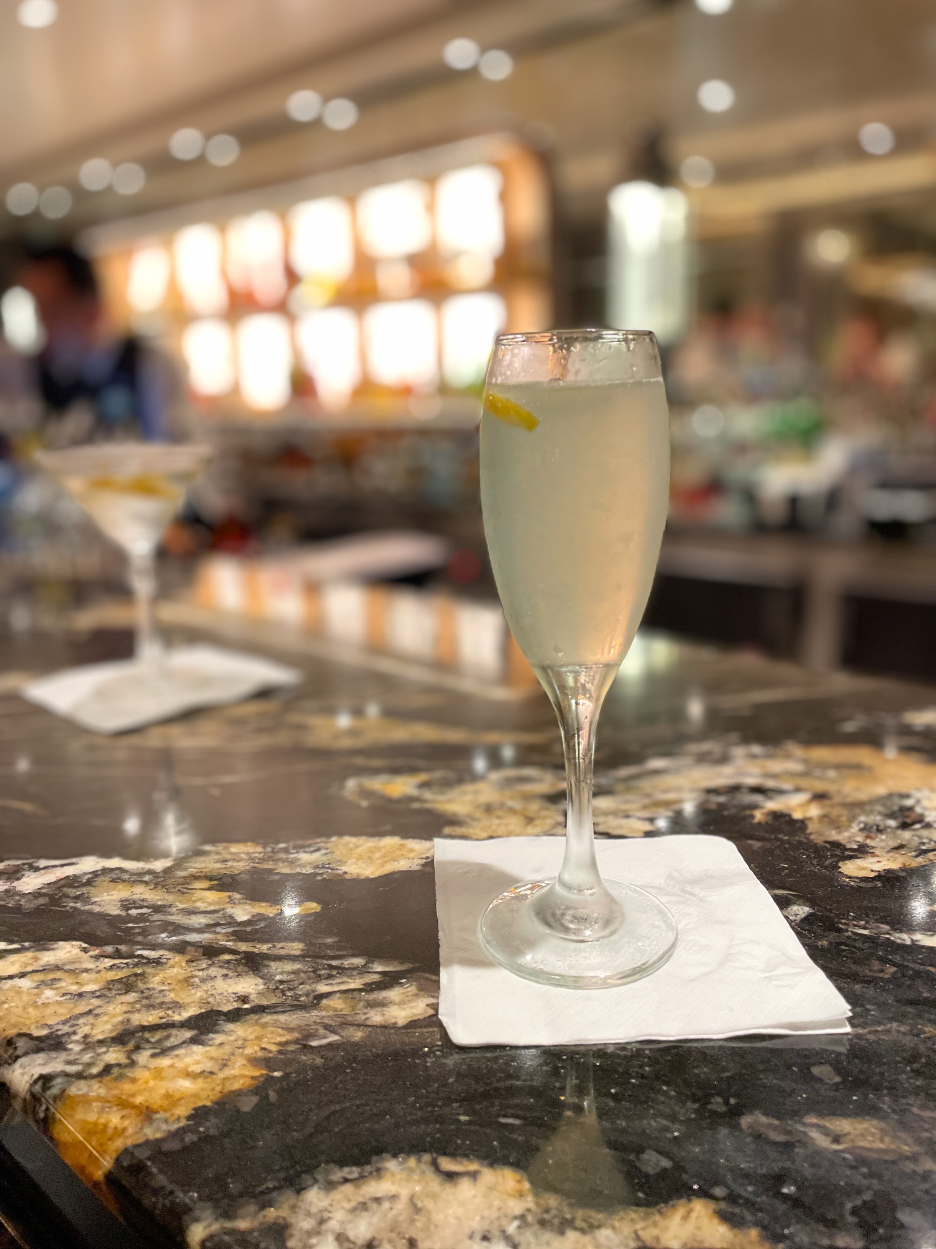 Bar Scene: Ok, so we may know more about this than we should. We expected to hang out at Good Spirits Bar a lot based on a very fun prior cruise experience (on the Ruby Princess – Where are you, our favorite barkeep, Artem?!?!), but we were disappointed to find that their menu was not the updated one that we had seen online, and we had tried their previous menu already. As in, we had tasted the entire menu and earned the t-shirts to prove it. If you haven’t done the Good Spirits Experience before, the menu is varied and fun, and you can watch a live demonstration that teaches you how the drinks are crafted.