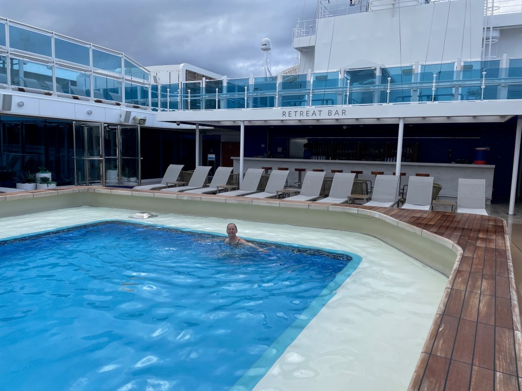 Fortunately, a lovely adults-only Retreat pool (Forward on deck 17) has a dedicated bar, a good amount of loungers, and hot tubs overlooking that on deck 18. We found it very busy one time and very empty a couple of other times, so it’s worth trying that pool, and the Mermaid Mimosa (Rob Floyd creation) from the Retreat Bar there is especially lovely.